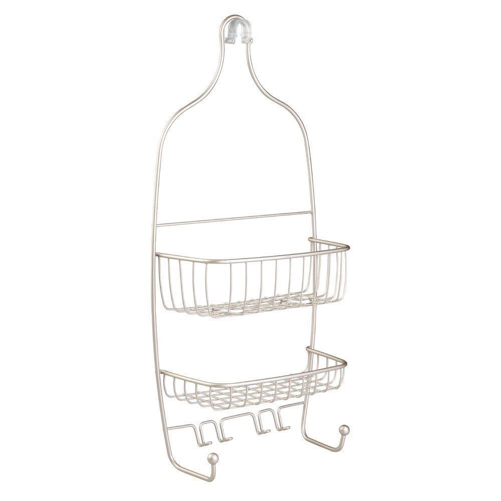 Built-in hooks for razors and shower essentials.