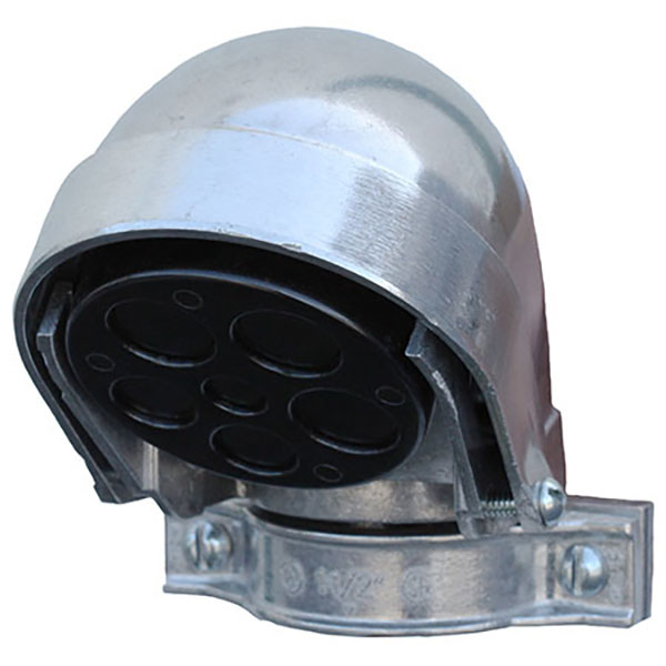 An entrance cap, specifically the clamp type, is a weatherproof fitting used in overhead electrical service entrances to connect wires to a building.