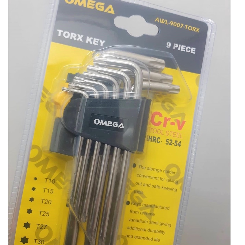 OMEGA 9pcs Torx Key CR-V Tool Steel Long Arm Tamper Proof Star Screwdriver Torque Repair Tools, L-Shape , AWL-9007-TORX