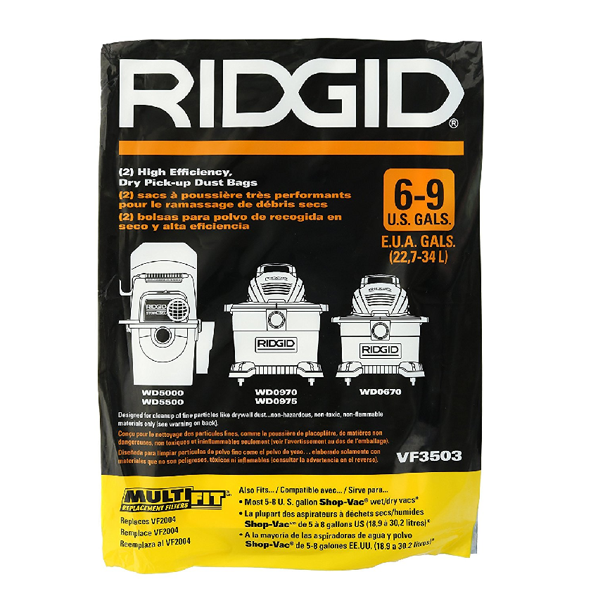 Ridgid VF3503 High Efficiency, Dry Pickup Dust Bags for 6 - 9 Gallons, 4015340153Ridgid VF3503 High Efficiency, Dry Pickup Dust Bags for 6 - 9 Gallons₱2,300.00Add to cart Add to compare list Custom wishlist OKAdd to wishlist